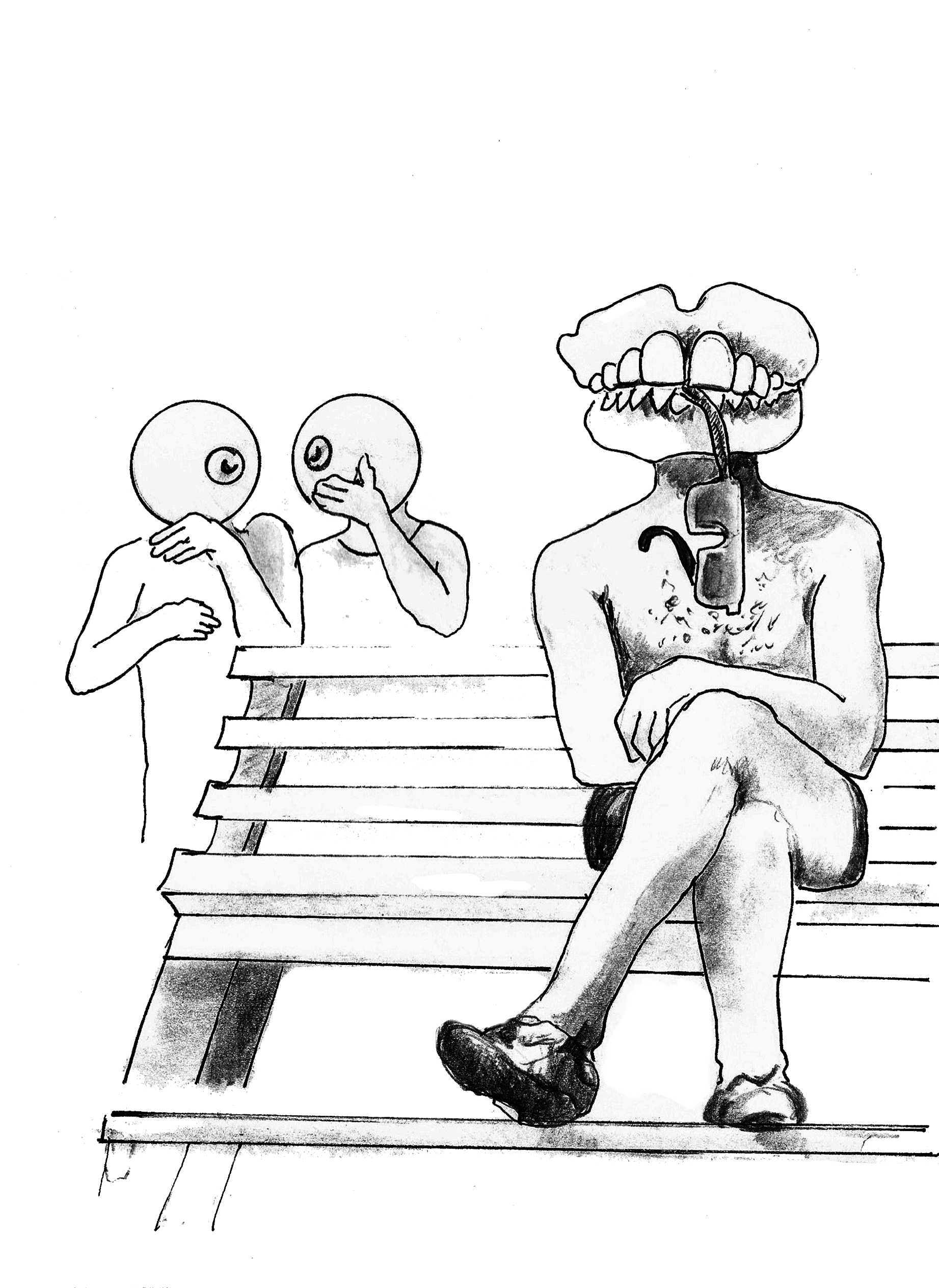 J’ai ensuite créé Smiley, le dentier. Ils sont devenus amis, jumeaux, amants ! Ensemble, ils vivent des aventures inusitées, drôles ou émouvantes. Smiley aime railler ses amis. Moqueur et machiavélique, il mord dans la vie pour le meilleur et pour le rire.