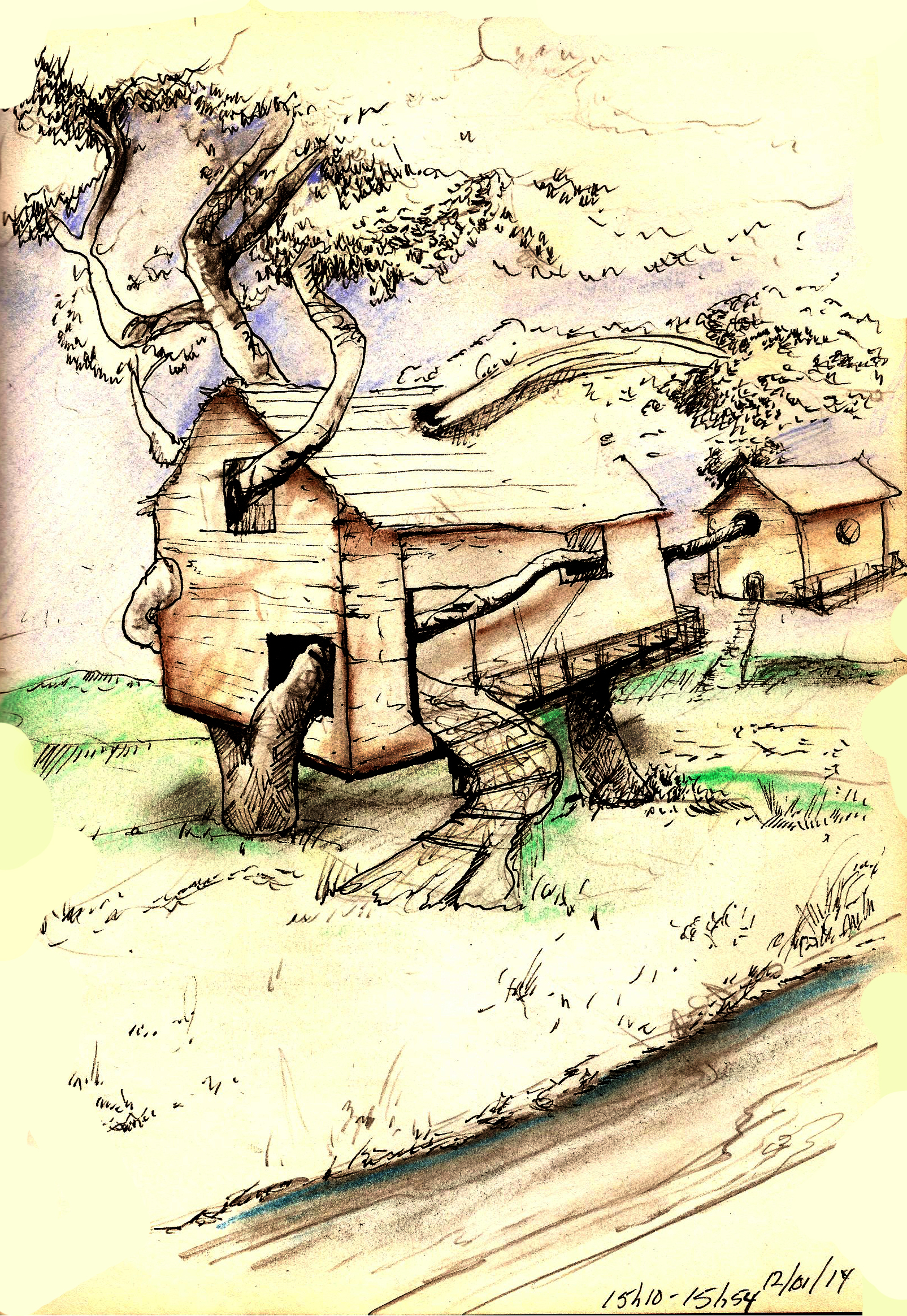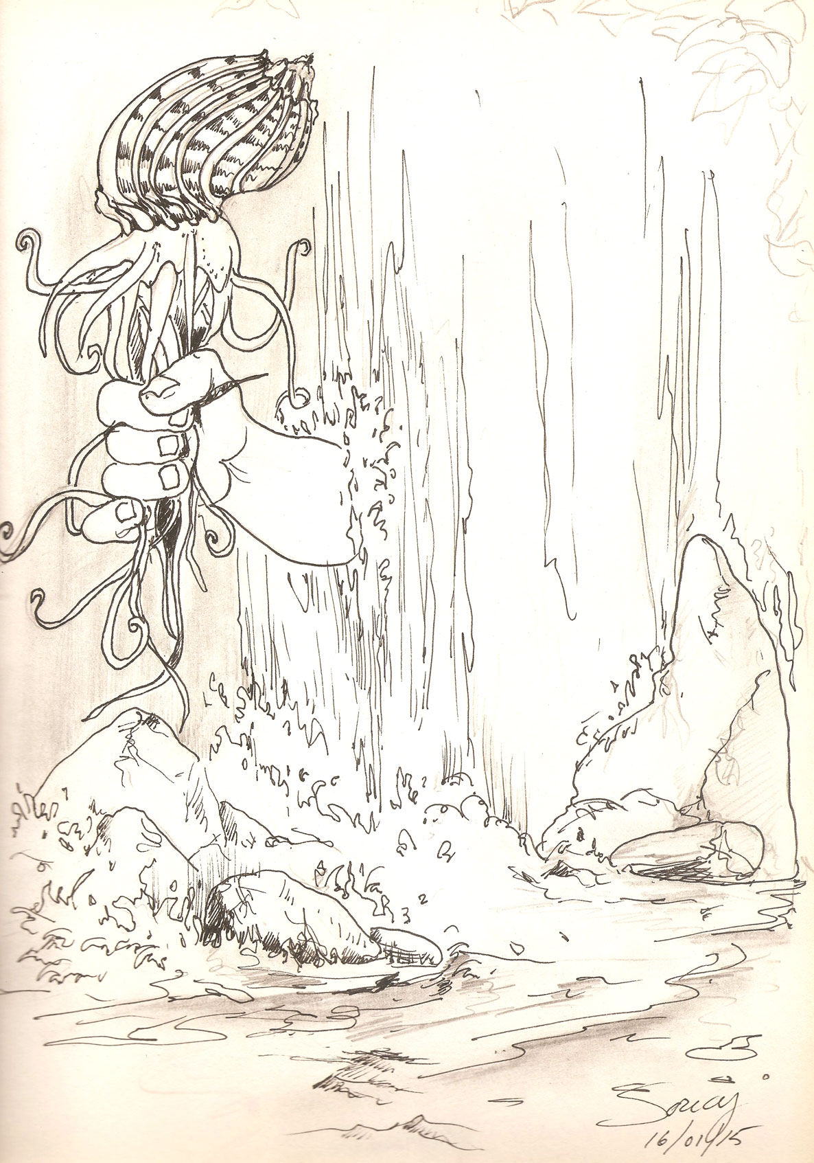 These are different sketches I have done for a scenographic project – « The Strange World »