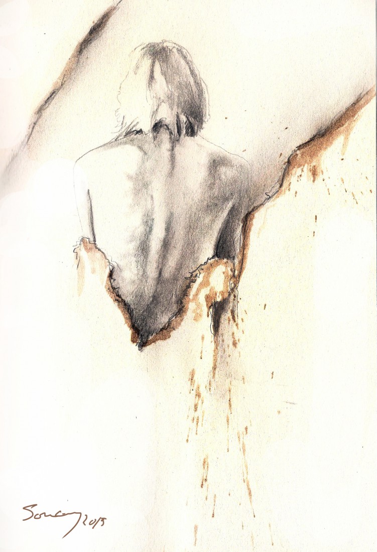 Pencil and ink on paper.
