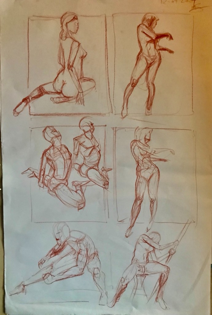 Petits réchauffement avant de donner mes premiers cours de dessins modèles vivants !