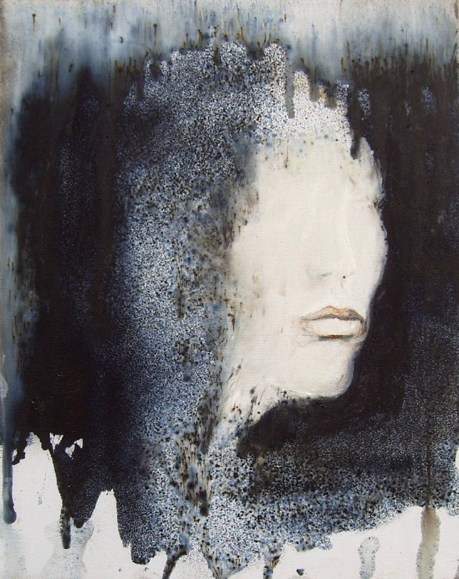 Ghost head, acrylic et brou de noix sur toile, 40 x 30 cm.