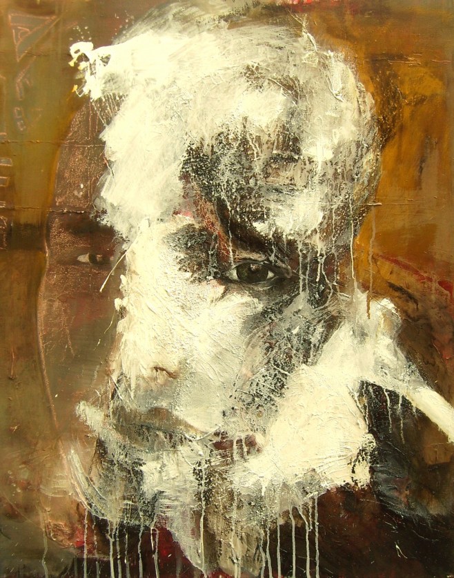 Boxing Helena Acrylique, huile et brou de noix sur toile, 90 x 70 cm. 2010