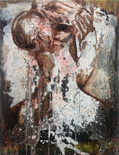 Acrylique, huile et brou de noix sur toile, 50 x 40 cm. (19,5 x 15 inches) 2013