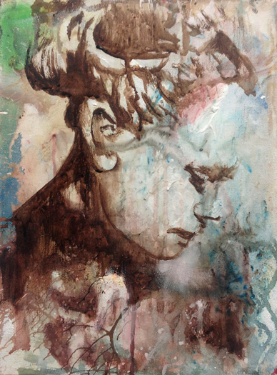 « S » _ Acrylique, huile et brou de noix sur toile, 50 x 40 cm. (19,5 x 15 inches) 2013