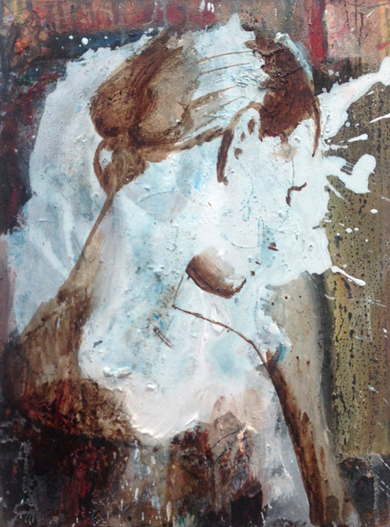 Acrylique, huile et brou de noix sur toile, 50 x 40 cm. (19,5 x 15 inches) 2013