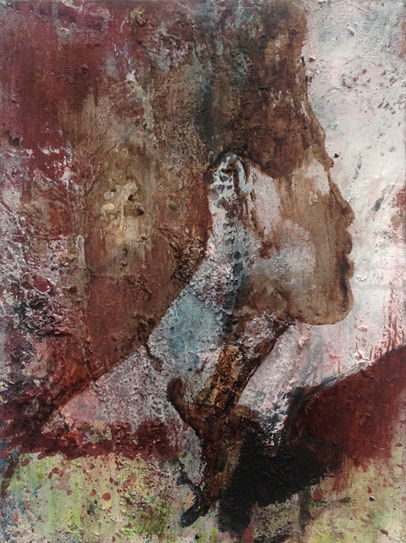 Acrylique, huile et brou de noix sur toile, 50 x 40 cm. (19,5 x 15 inches) 2013