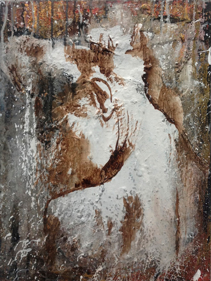 Acrylique, huile et brou de noix sur toile, 50 x 40 cm. (19,5 x 15 inches) 2013