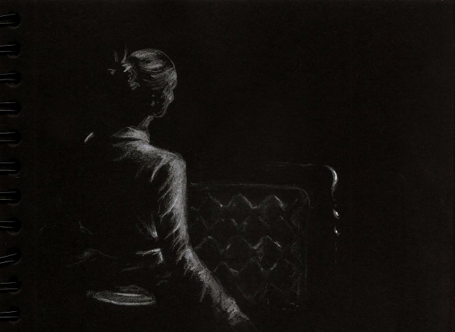 woman waiting_charcoal on black paper