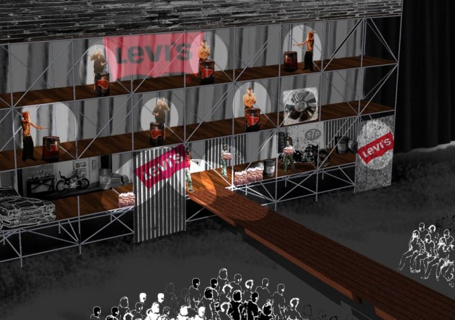 Extrait d’une série de dessin pour un défilé de mode pour Levis dans un entrepôt à Anvers.